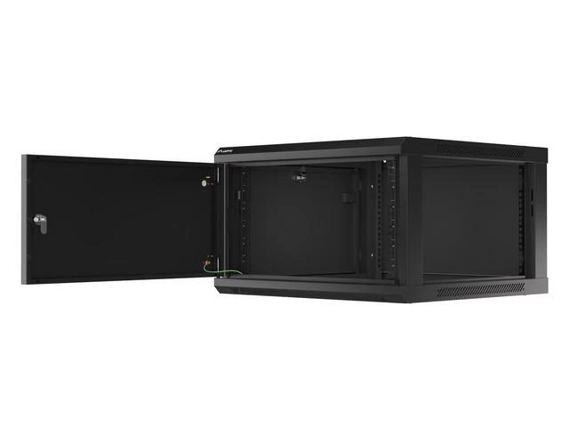 LANBERG Wall mount cabinet 19inch 6U 600x600 steel doors black flat pack