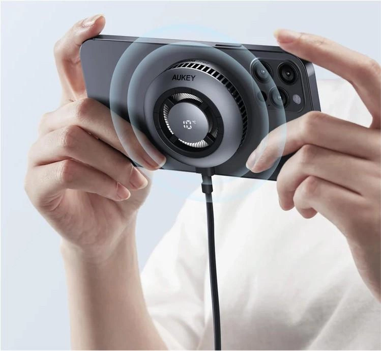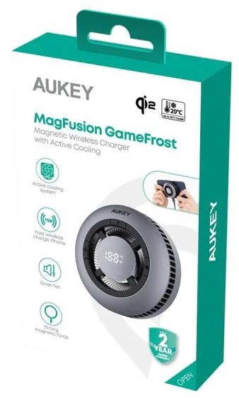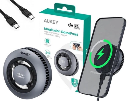 AUKEY LC-G10 MagFusion GameFrost Qi2 Ładowarka bezprzewodowa Magsafe 15W USB-C z aktywnym chłodzeniem + kabel AUKEY USB-C