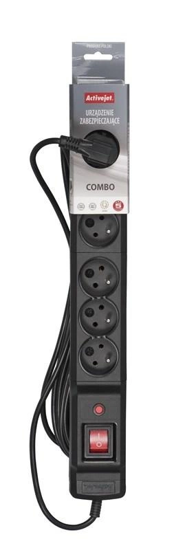 Listwa przeciwprzepięciowa Activejet COMBO 6gn/3m/cz (10A; 2300W) 3m; kolor czarny