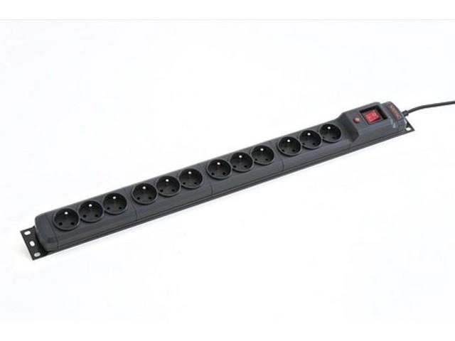 Listwa przeciwprzepięciowa M12/16A Rack 19'' 2.5m czarna (12 gniazd) do montażu pionowego