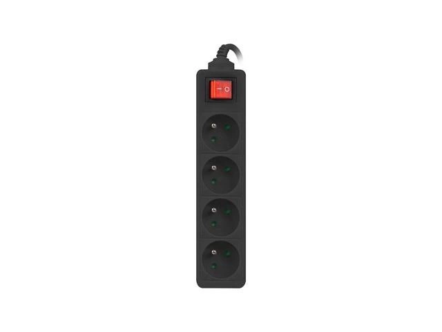 Listwa zasilająca 1,5m, czarna, 4 gniazda, z wyłącznikiem, kabel wykonany z pełnej miedzi