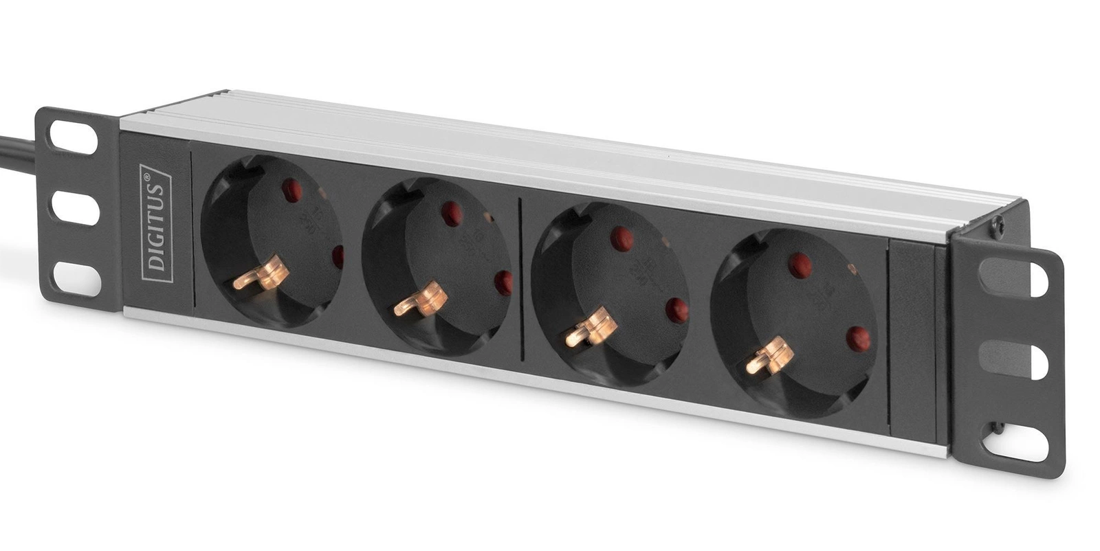 Listwa zasilająca DIGITUS do szaf 10" RACK 4xSchuko, 2m 1xSchuko, 16A, aluminiowa