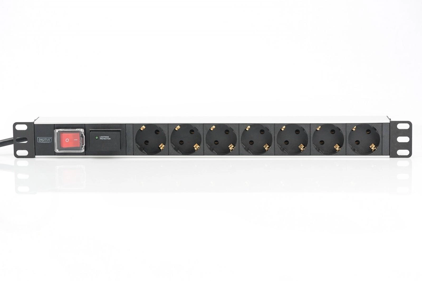 Listwa PDU z siedmioma gniazdami typu Schuko. Instalowana w szafie rack pionowo lub poziomo. Obudowa wykonana jest z aluminium. Posiada dwa uchwyty do montażu w szafie. Maksymalne obciążenie to 4000 W. Prąd znamionowy wynosi 16 A, a napięcie znamionowe to 250 V.