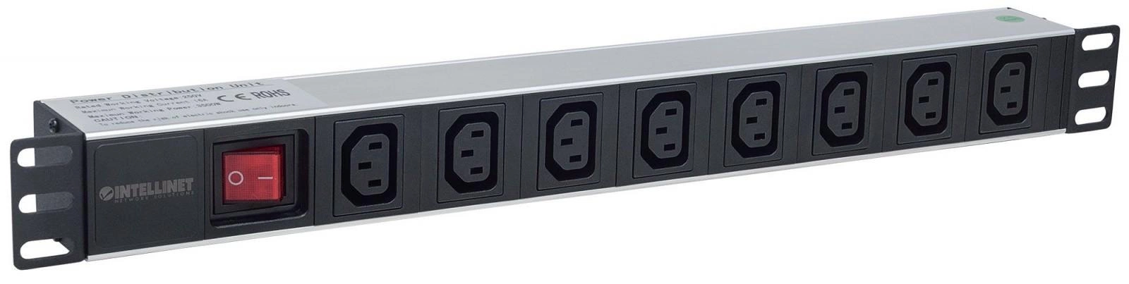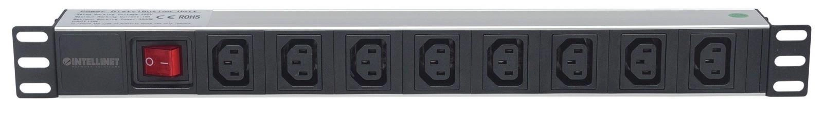 Listwa zasilająca rack 19 1U 110V-250V/10A 8 gniazd C13 kabel 2m długości.