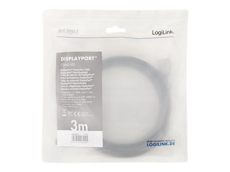 LOGILINK CDA0102 Kabel DisplayPort DP/M do DP/M 4K/60 Hz aluminium czarny/szary 3m