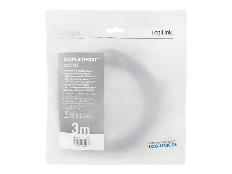 LOGILINK CDA0106 Kabel DisplayPort DP/M do DP/M 8K/60 Hz aluminium czarny/szary 3m