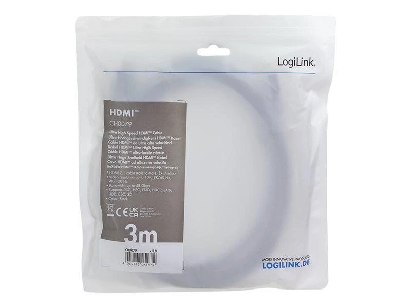 LOGILINK CH0079 LOGILINK - Kabel HDMI 2.1, M/M, 3 m, kol.czarny