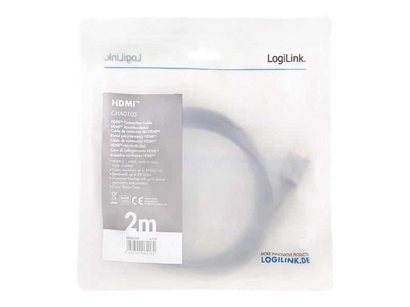 LOGILINK CHA0105 Kabel HDMI A/M to A/M 8K/60Hz alu czarny/szary 2m