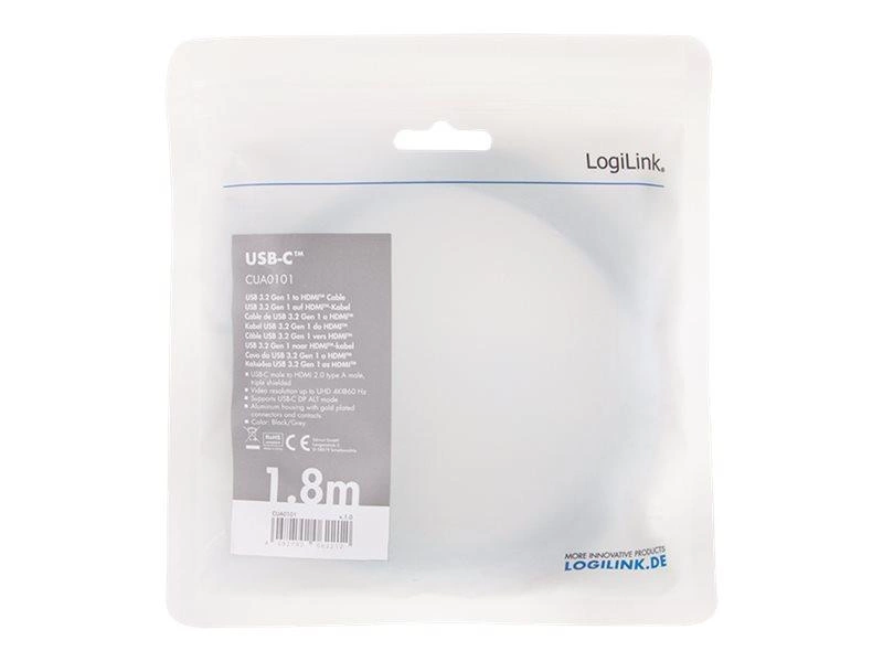 LOGILINK CUA0101 Kabel USB typu C C/M na HDMI/M 4K aluminium czarny/szary 1.8m