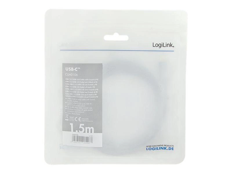 LOGILINK CUA0106 Kabel USB 2.0 Type-C C/M na USB-C/M E-mark PD aluminium czarny/szary 1.5m