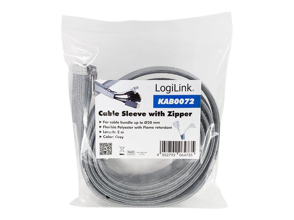 LOGILINK KAB0072 Cable sleeve with zipper Polyester Ø 30 mm grey 2m