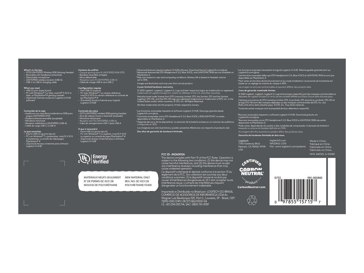 LOGITECH G G733 LIGHTSPEED Wireless RGB Gaming Headset Headset full size 2.4 GHz wireless white