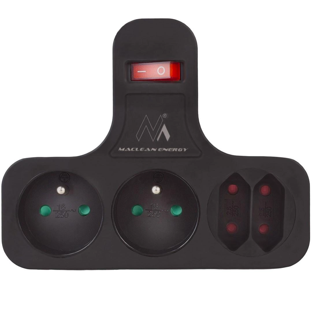 MACLEAN GNIAZDKO PRĄDOWE, POCZWÓRNE Z WYŁĄCZNIKIEM, NÓŻKĄ STABILIZUJĄCĄ, TYPU E, 2X2,5A, 2X16A MCE224 E/B