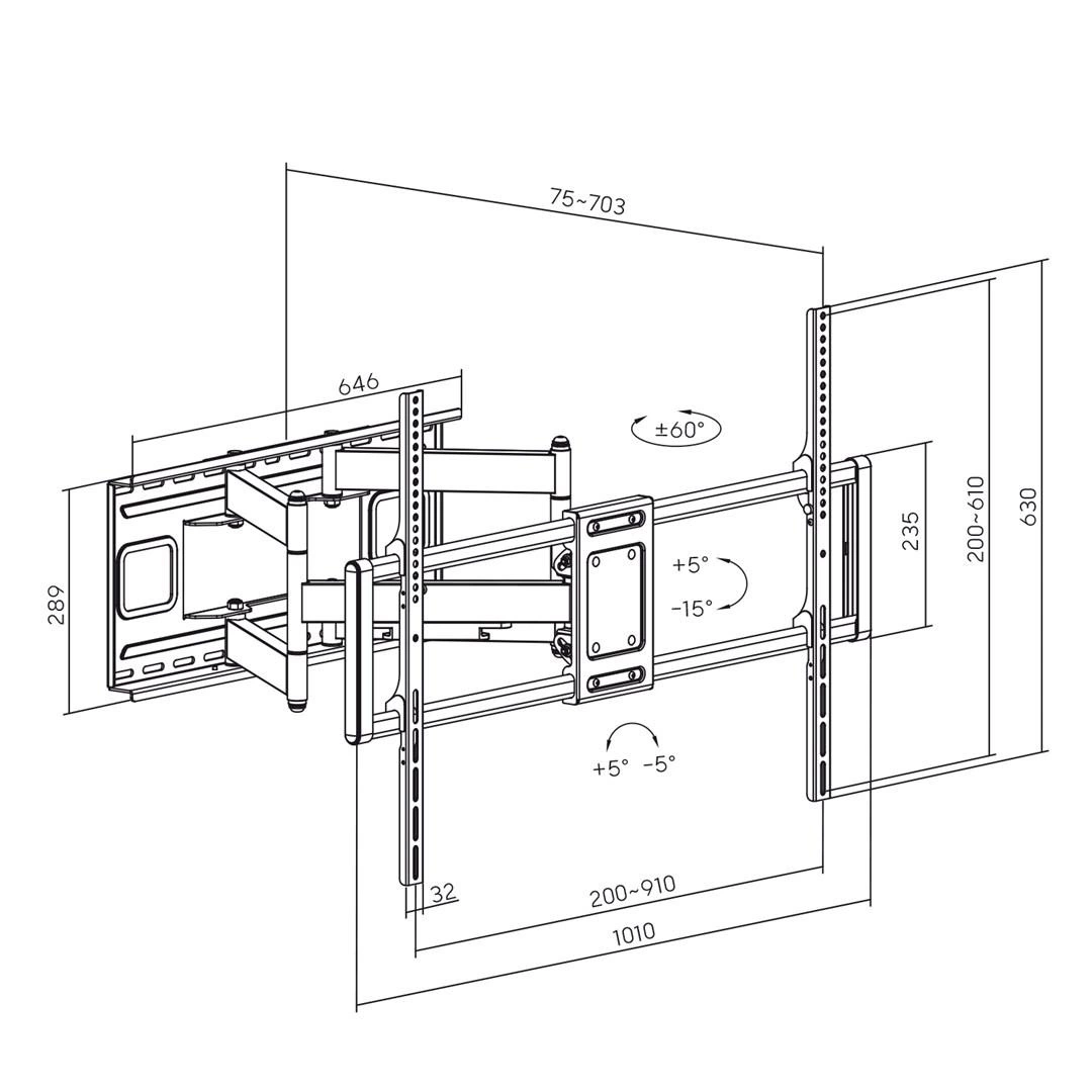 MACLEAN UCHWYT DO TV EKONOMICZNY 60-120" 120KG VESA 900X600 MC-482