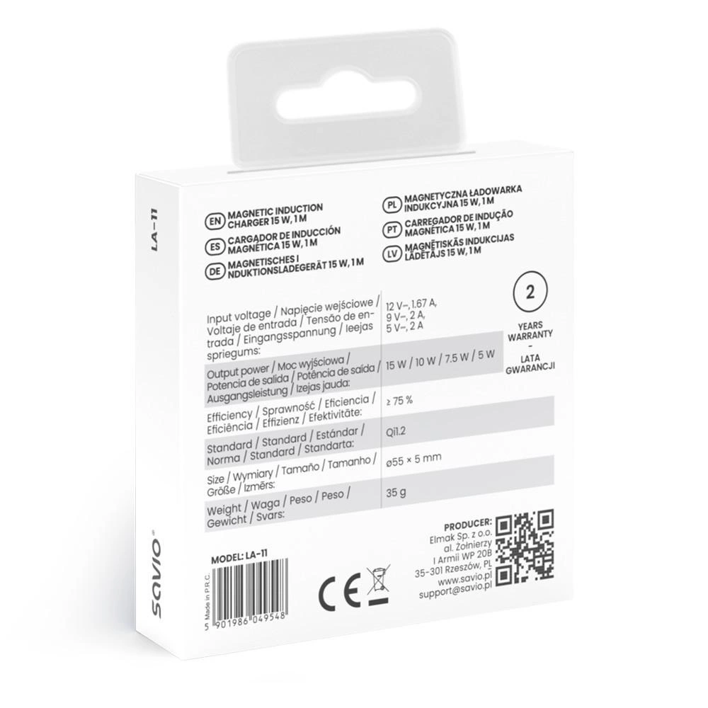 - SAVIO LA-11 Bezprzewodowa ładowarka magnetyczna 15 W