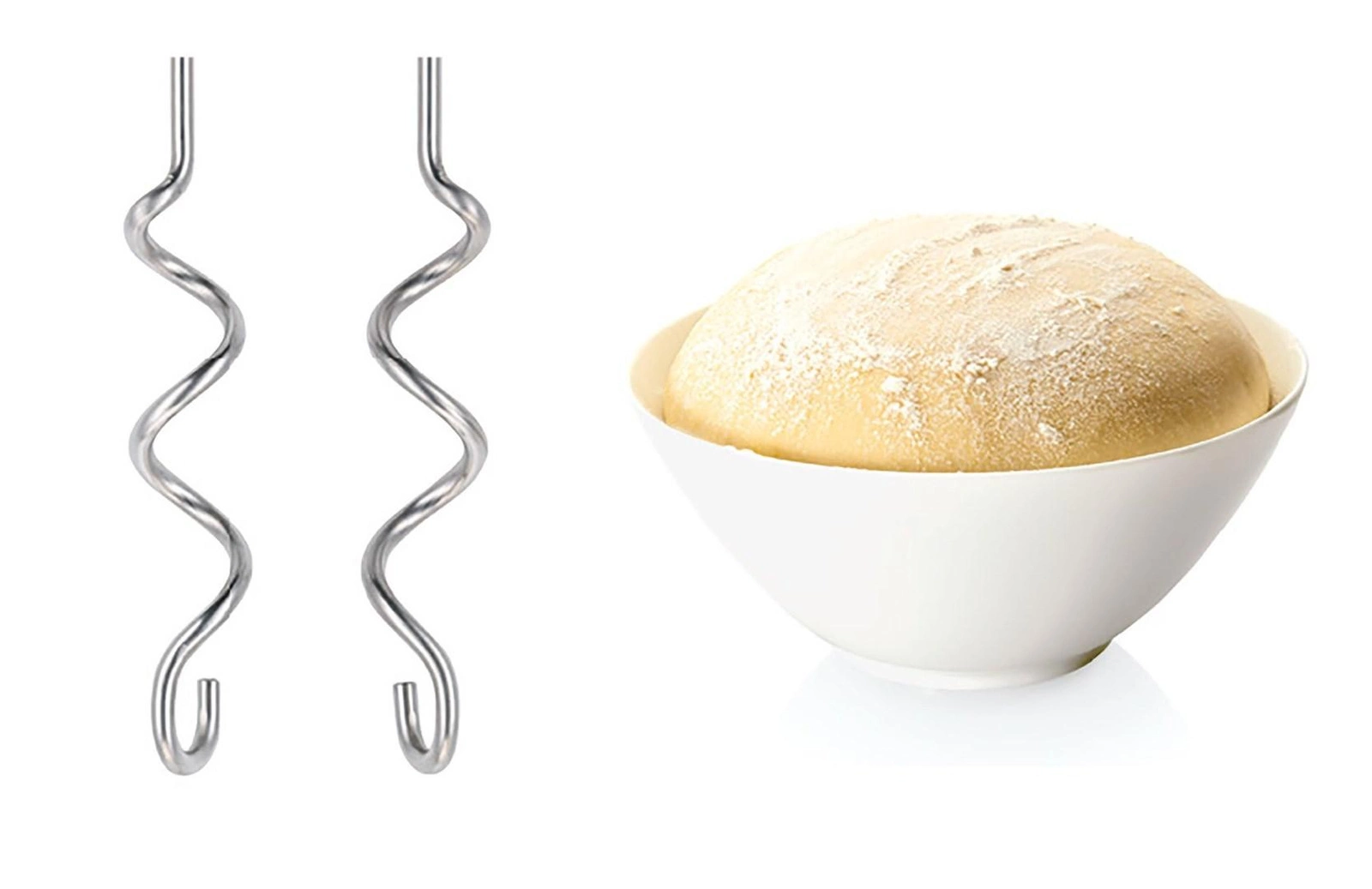 - Wszystkie akcesoria - końcówki do ubijania i haki - można myć w zmywarce