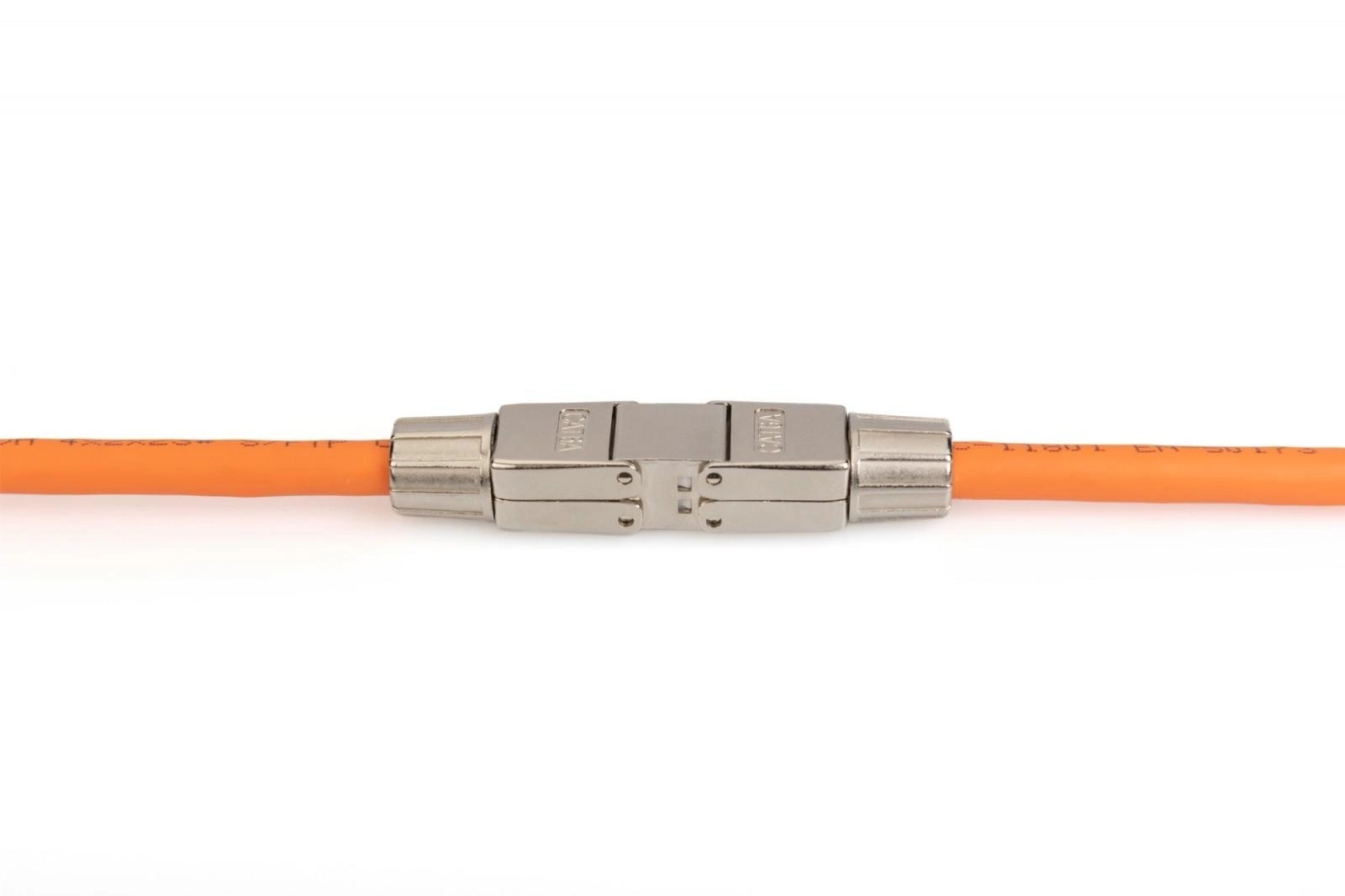 Złącze DIGITUS Professional CAT do zastosowań polowych służy do łączenia lub przedłużania przewodów skręcanych. Wytrzymała metalowa obudowa zapewnia długotrwałe i stabilne połączenia. Złącze to jest idealnym wyborem do przedłużania lub naprawy istniejących przewodów. Montaż bez użycia specjalnych narzędzi jest łatwy do przeprowadzenia dzięki oznaczonemu kolorami zaciskowi nożowemu LSA.
