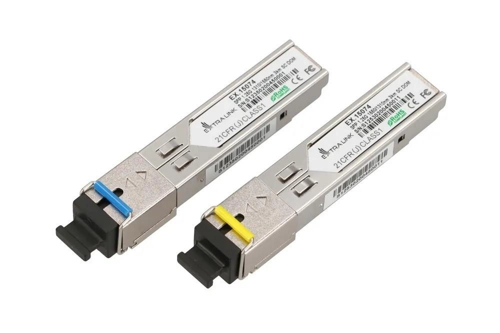 Światłowodowy moduł Extralink SFP 1.25G 1310/1550NM to jednomodowa wkładka SFP przeznaczona do transmisji danych z prędkością do 1.25 Gbps, która zapewnia zasięg transmisji na dystansie do 3 km. Posiada złącze wyjściowe LC. Prezentowany moduł Extralink SFP 1.25G 1310/1550NM jest dedykowany dla urządzeń HP/Aruba.