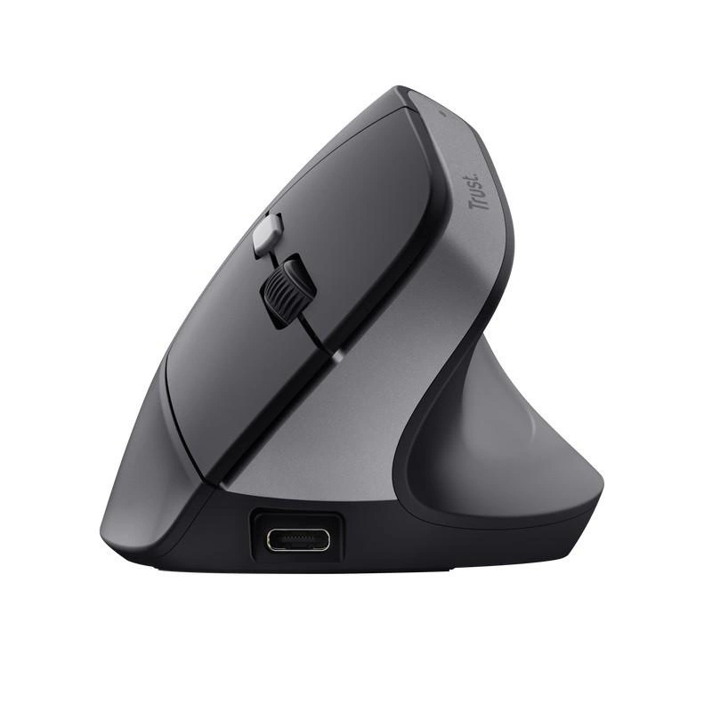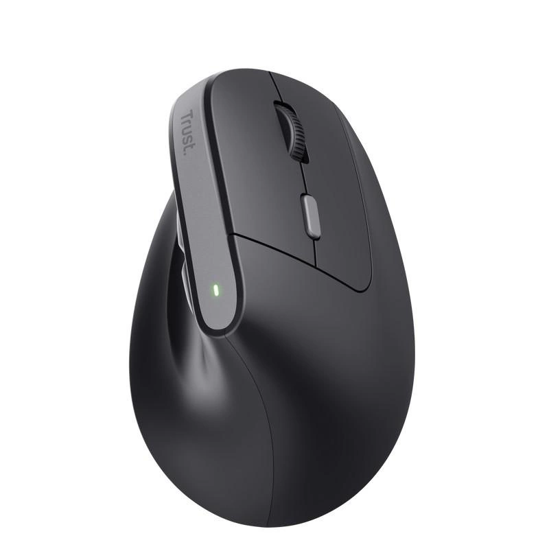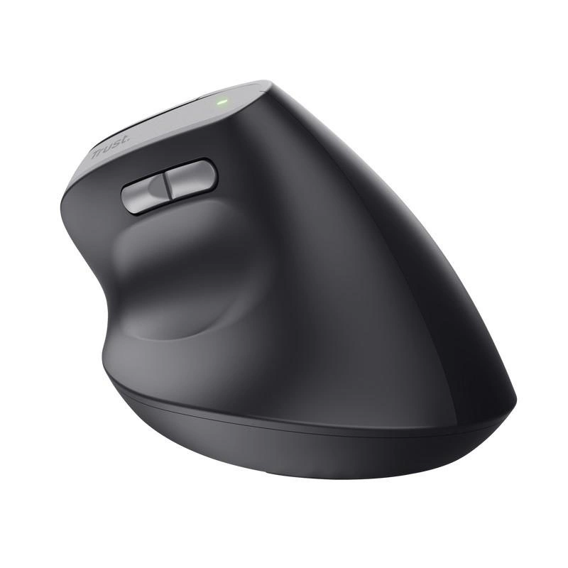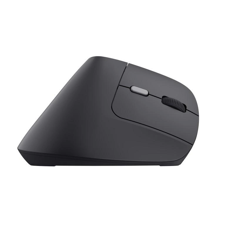 Ergonomiczna mysz bezprzewodowa z optymalnym kątem nachylenia w pionie dla zmniejszenia napięcia nadgarstka.