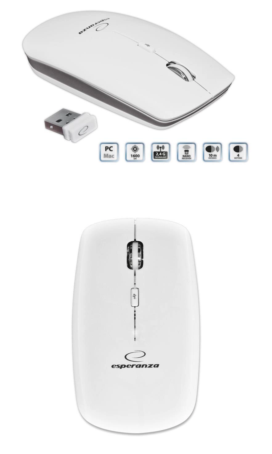 Mysz bezprzewodowa Esperanza SATURN EM120W optyczna biała