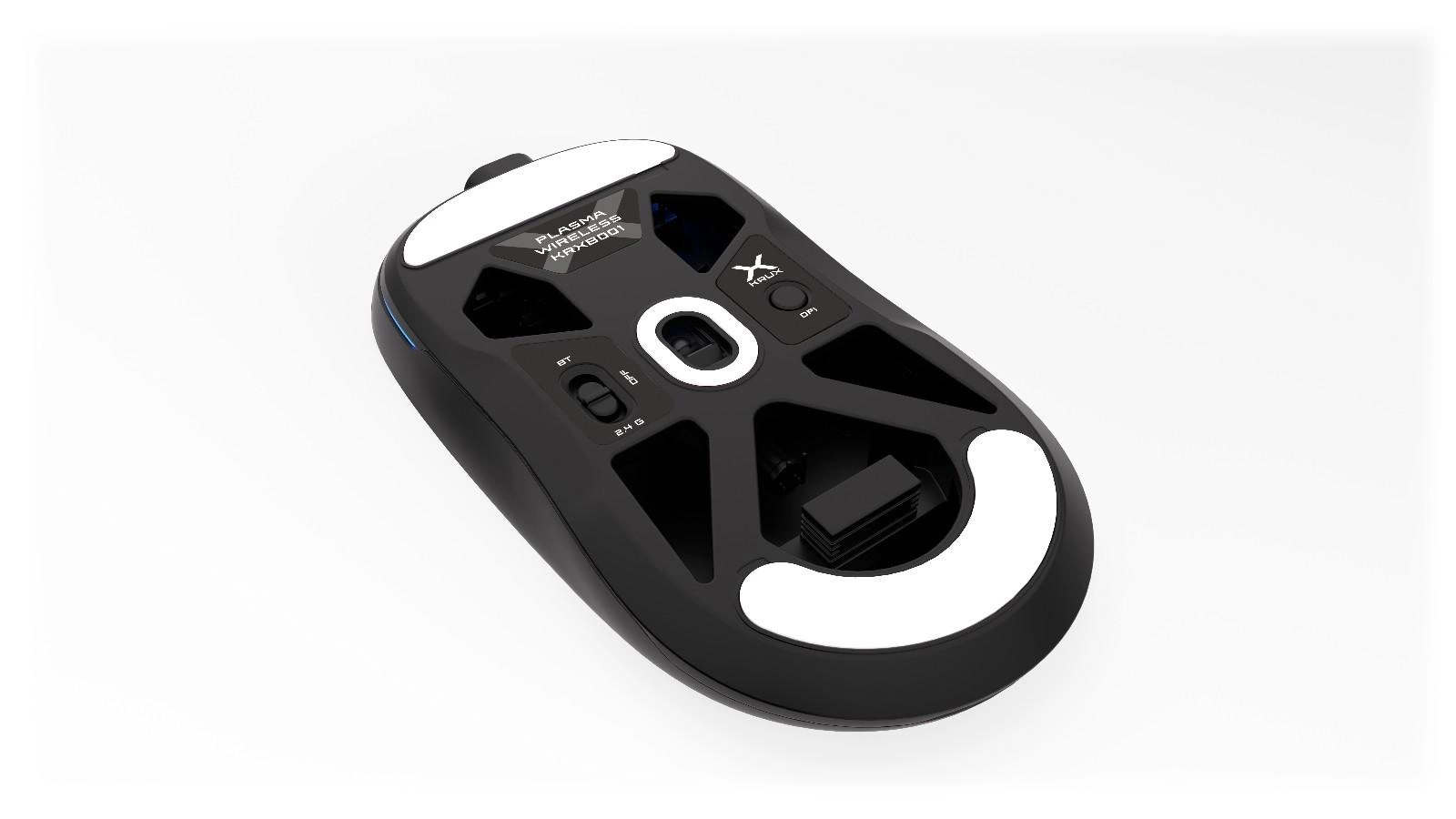 Krux Plasma Wireless można podłączyć na trzy różne sposoby. Jeżeli lubisz mieć gryzonia na uwięzi, podepnij go kablem USB i używaj w tradycyjny sposób. Jeżeli jednak potrzebne jest połączenie bezprzewodowe, masz wybór wpięcia dongla odpowiedzialnego za sygnał 2.4 Ghz albo sparowania myszy z komputerem lub konsolą przy pomocy Bluetooth.