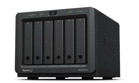 NAS Synology DS620slim; Tower; 6x (2.5" SATA HDD); Intel Celeron J3355; 2GB DDR3L (max. 6GB), 2x 1GbE RJ-45