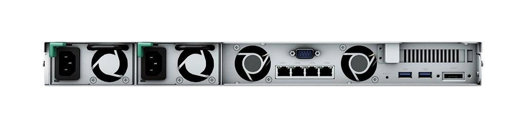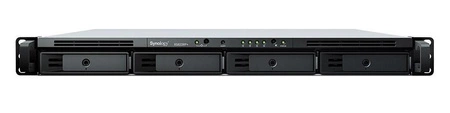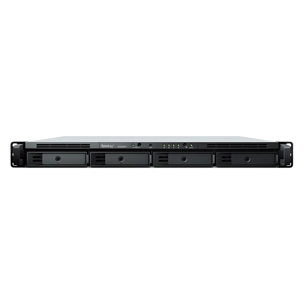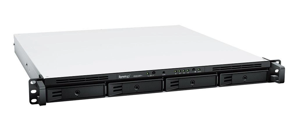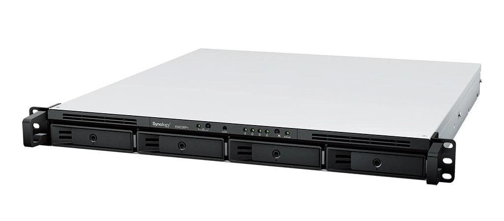 NAS Synology RS822RP+; 1U RACK; 4x (3.5" SATA HDD/2.5" SATA SSD); AMD Ryzen V1500B; 2 GB DDR4 ECC SODIMM (max. 32GB), 4x 1GbE RJ-45