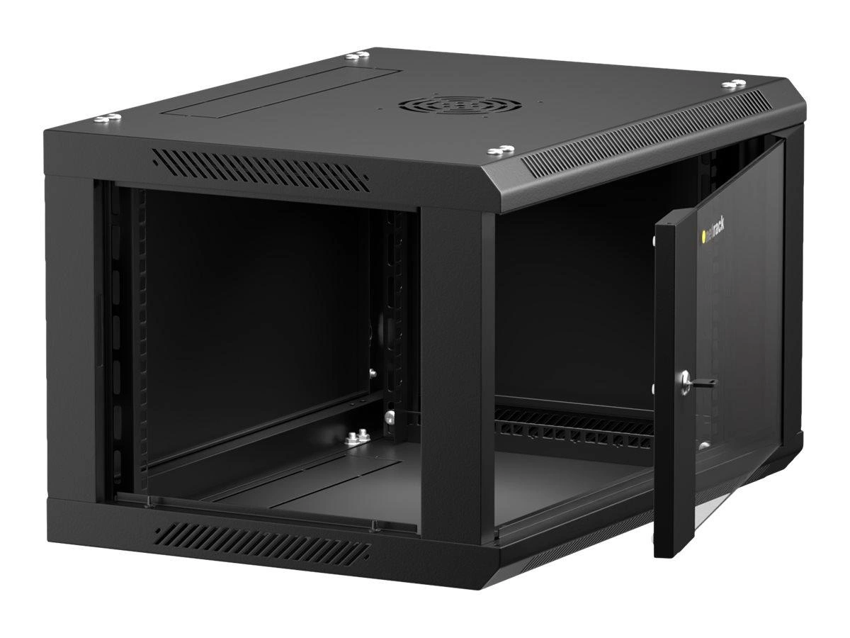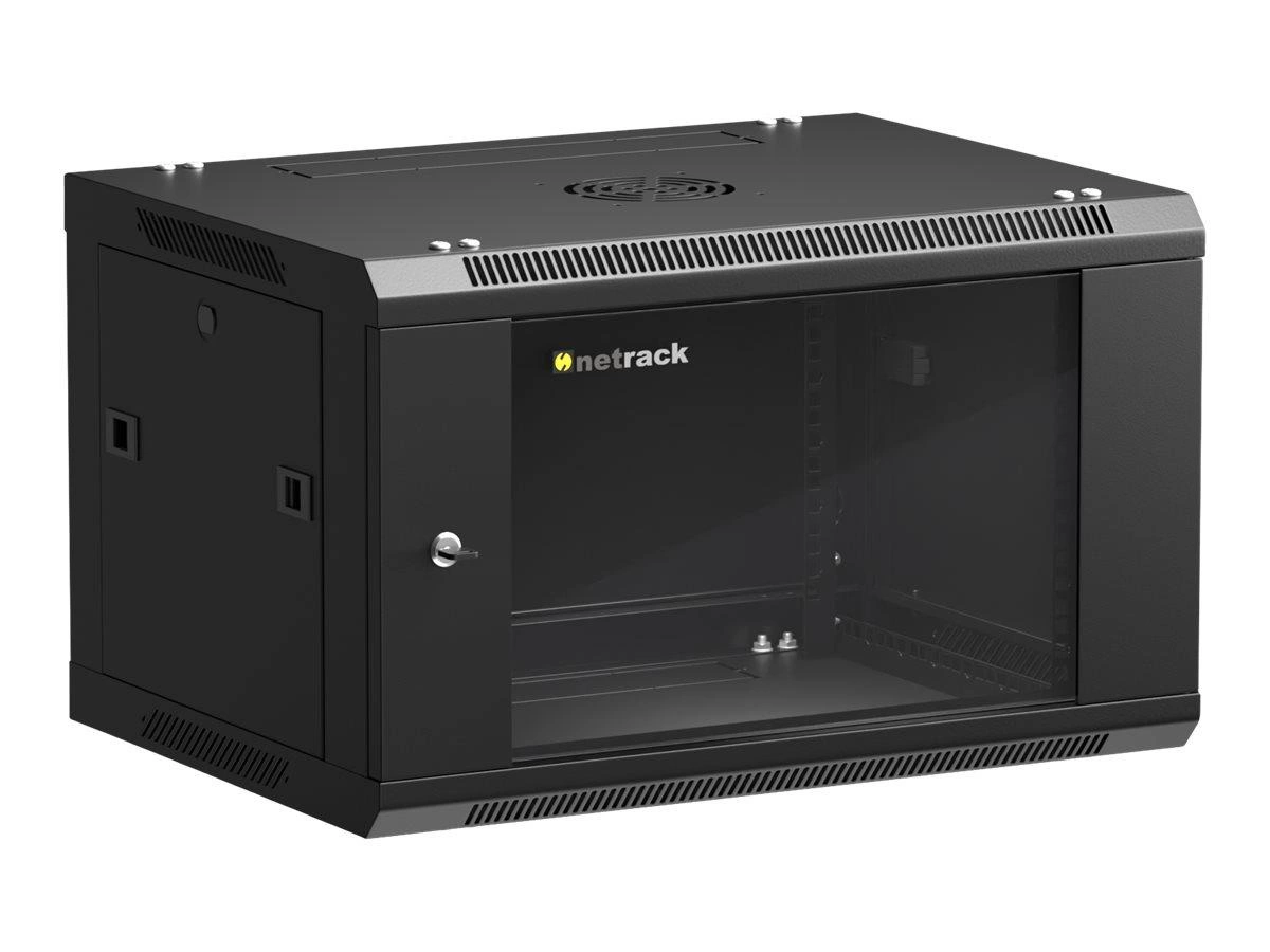 NETRACK 019-060-645-022 Netrack szafa wisząca 19, 6U/600x450mm – czarny, drzwi szklane, otwierane boki