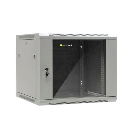 NETRACK 019-090-66-021 Netrack szafa wisząca 19, 9U/600x600mm –szary, drzwi szklane, otwierane boki