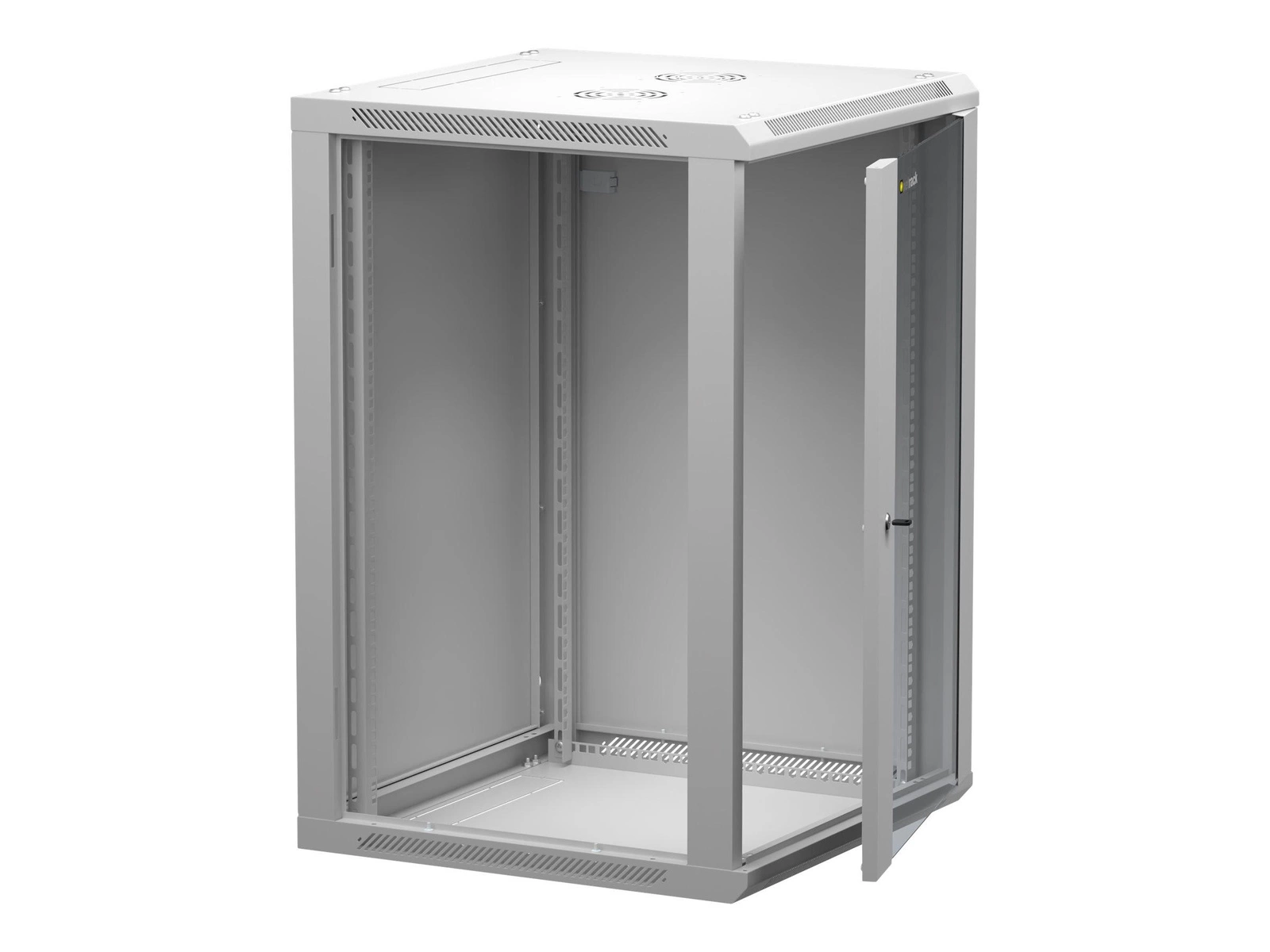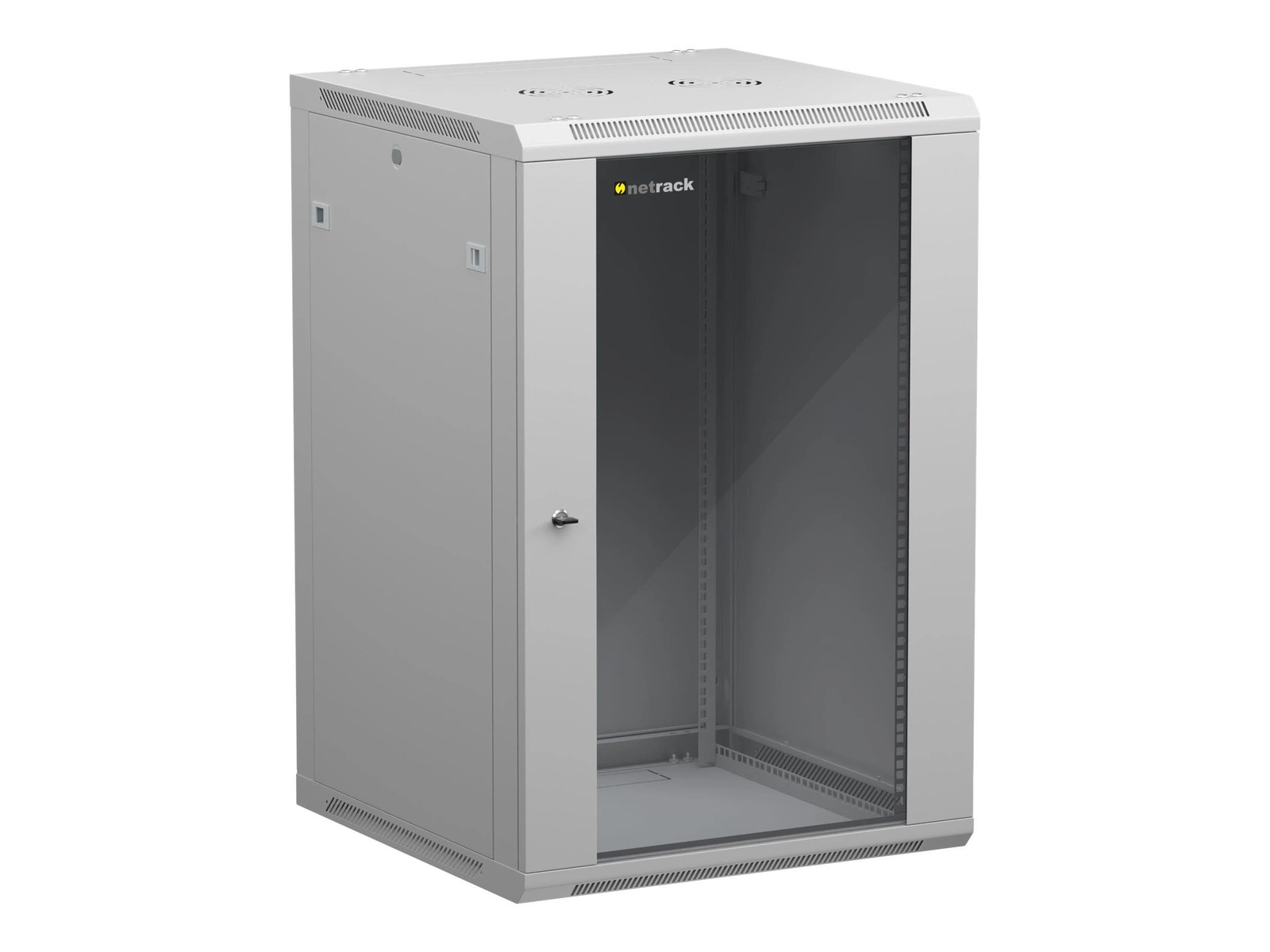 NETRACK 019-180-66-021 Netrack szafa wisząca 19, 18U/600x600mm – szary, drzwi szklane, otwierane boki