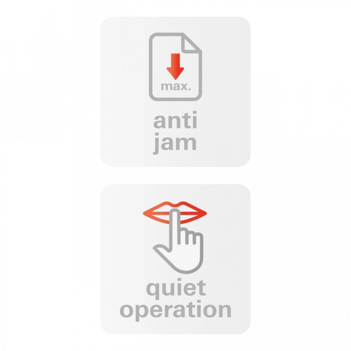 Funkcjonalna i przyjazna dla użytkownika. Ta niszczarka dokumentów na kółkach tnąca na mikrościnki, dedykowana do bardzow wrażliwych danych np. kanceparii parwny, notralialnych, wyróżnia się nowoczesnym wzornictwem oraz funkcją zapobiegania zacięciu papieru. Odpowiednia dla grupy do 5 osób.