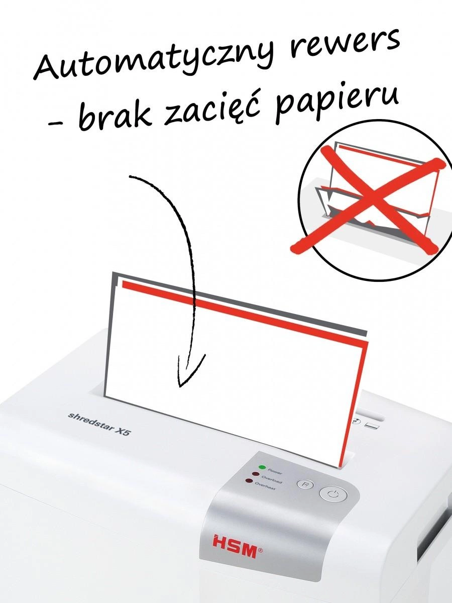 - Funkcja automatycznego wycofania pozwala uniknąć zacięcia papieru
