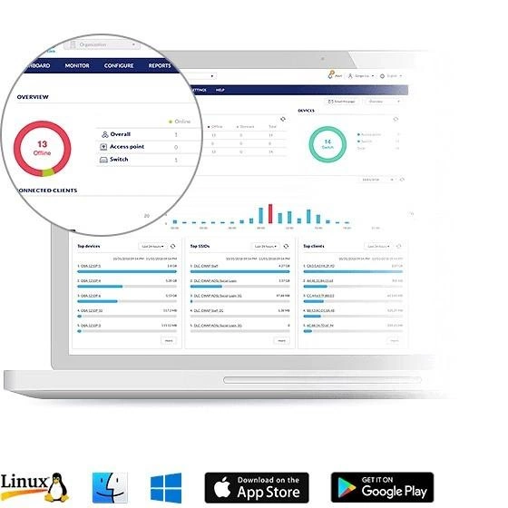 • Zarządzaj siecią z jednego miejsca przez przeglądarkę lub aplikację w dowolnym miejscu i o każdej porze.