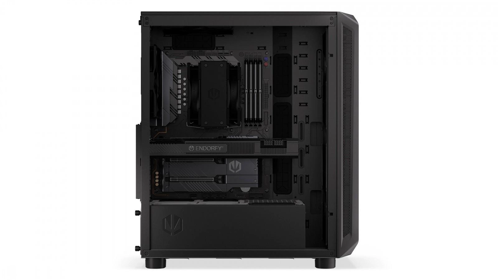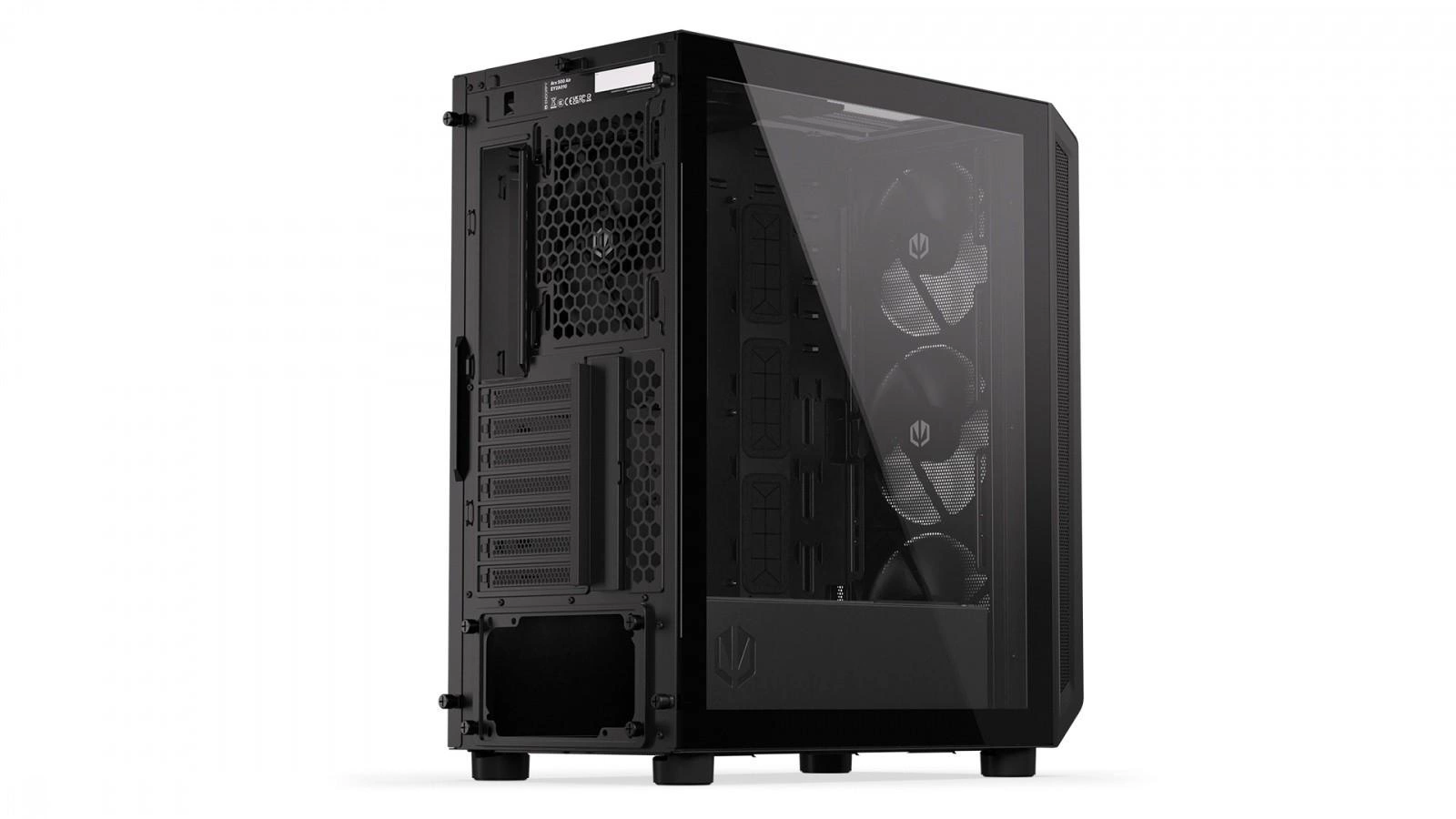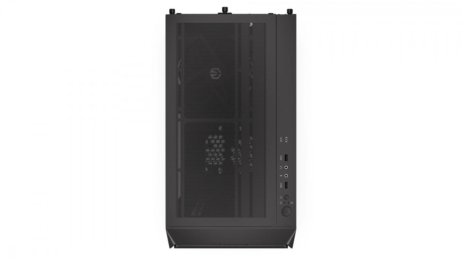 To jedna z największych (nieco krótsza od serii Arx 700) obudów, jaką stworzyliśmy. Ma 486×228×429 mm - to spokojnie wystarcza między innymi na wysoki system chłodzenia (do 179 mm), 7 wentylatorów (w tym 5 Stratusów 140 PWM masz od nas na start) i większość dostępnych na rynku kart graficznych (do 350 mm). Wszystko siedzi sobie w przyjemnym przeciągu, bo drobno perforowany przedni i górny panel wpuszczają świeże powietrze i blokują kurz. Sprawdzisz to przez okno z hartowanego szkła.