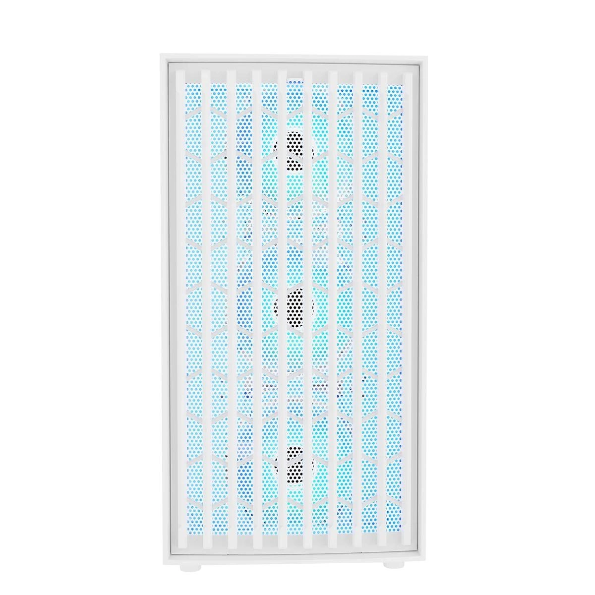 W obudowie zainstalowane zostały cztery 140 milimetrowe wentylatory ARGB. Trzy z nich, zamontowane na froncie, wtłaczają powietrze do wnętrza komputera, natomiast jeden, zamontowany na panelu tylnym, ma za zadanie wydmuchiwać gorące powietrze na zewnątrz. To rozwiązanie zapewnia chłodną pracę komputera, niezależnie od realizowanych przez komputer procesów i działań. Możliwości rozbudowy o dodatkowe chłodzenie powietrzne jest tu sporo. Oprócz zamontowanych już wentylatorów, można we własnym zakresie zainstalować dwa wentylatory 120 mm lub 140 mm na górze oraz dwa 120 mm na tunelu zasilacza.