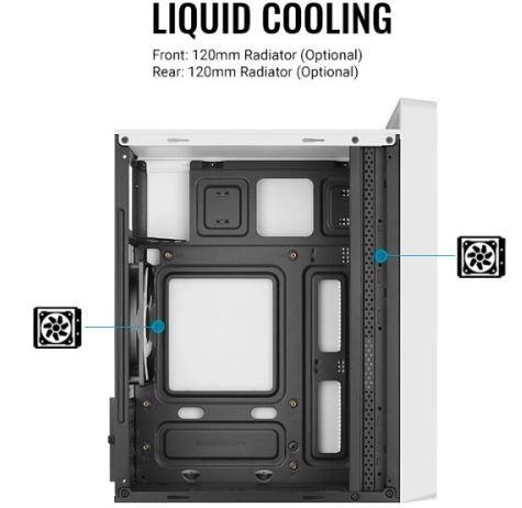 Ta wysokowydajna obudowa typu mini tower, zaprojektowana z myślą o wentylacji, zapewnia doskonały przepływ powietrza i wentylację, co przekłada się na lepszą wydajność chłodzenia. Wygodny uchwyt na górze walizki pozwala na łatwe pozycjonowanie i transport, dodając jednocześnie stylowy i niepowtarzalny wygląd. Obsługuje chłodzenie cieczą z przodu iz tyłu obudowy, zapewniając maksymalną wydajność chłodzenia.
