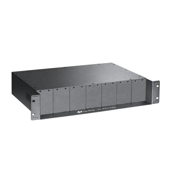 14-slotowa obudowa do szafy Rack TL-FC1420 jest zaprojektowana do obsługi 14 Media konwerterów TP-Link. Dzięki centralnemu zasilaczowi można oszczędzić miejsce i przewody zasilające. Ciągła praca jest bardzo ważna w komunikacji światłowodowej, więc obudowa wyposażona w opcjonalny zasilacz redundantny i funkcję Hot-Swap pozwala na montaż/demontaż konwertera bez wyłączania całej obudowy. Ponadto, aby ustabilizować wydajność i przedłużyć żywotność urządzenia, w zasilaczu został zamontowany wentylator chłodzący. Wraz z Gigabitową serią FC / Fast Ethernet Media konwerterami, TL-FC1420 jest idealnym rozwiązaniem dla Media konwersji w sieci.