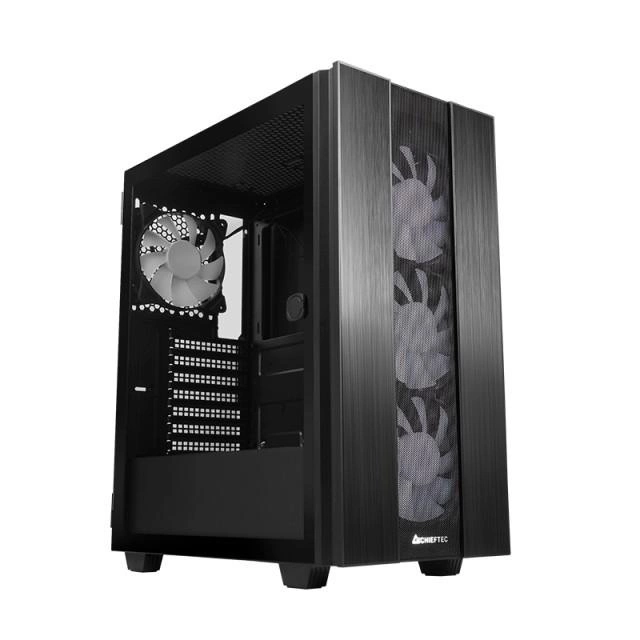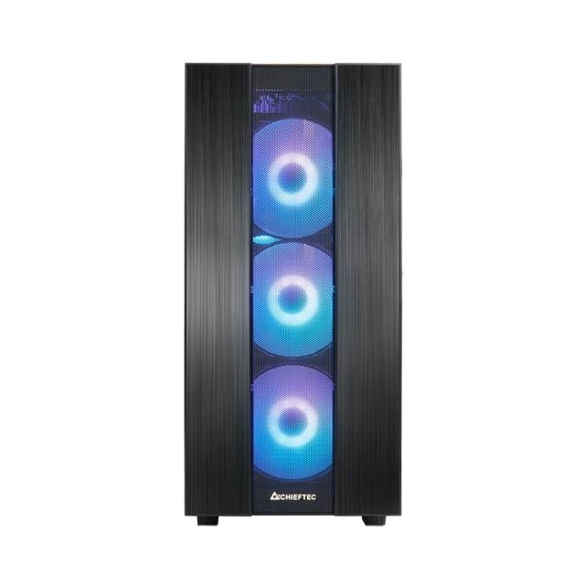 Dzięki 4 fabrycznie zainstalowanym wentylatorom Rainbow A-RGB podłączonym do koncentratora sterującego, który umożliwia synchronizację M/B i kontrolę prędkości wentylatora, obsłudze radiatora 280 mm i maksymalnej długości procesora graficznego wynoszącej 320 mm, CHIEFTEC Hunter 2 jest gotowy do obsługi nowoczesnych systemów do gier.
