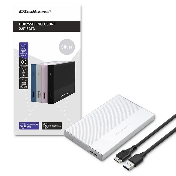 Obudowa | Kieszeń na dysk SSD HDD 2.5 cala| SATA | USB 3.0 | Super speed 5Gb/s | 2TB | Srebrna