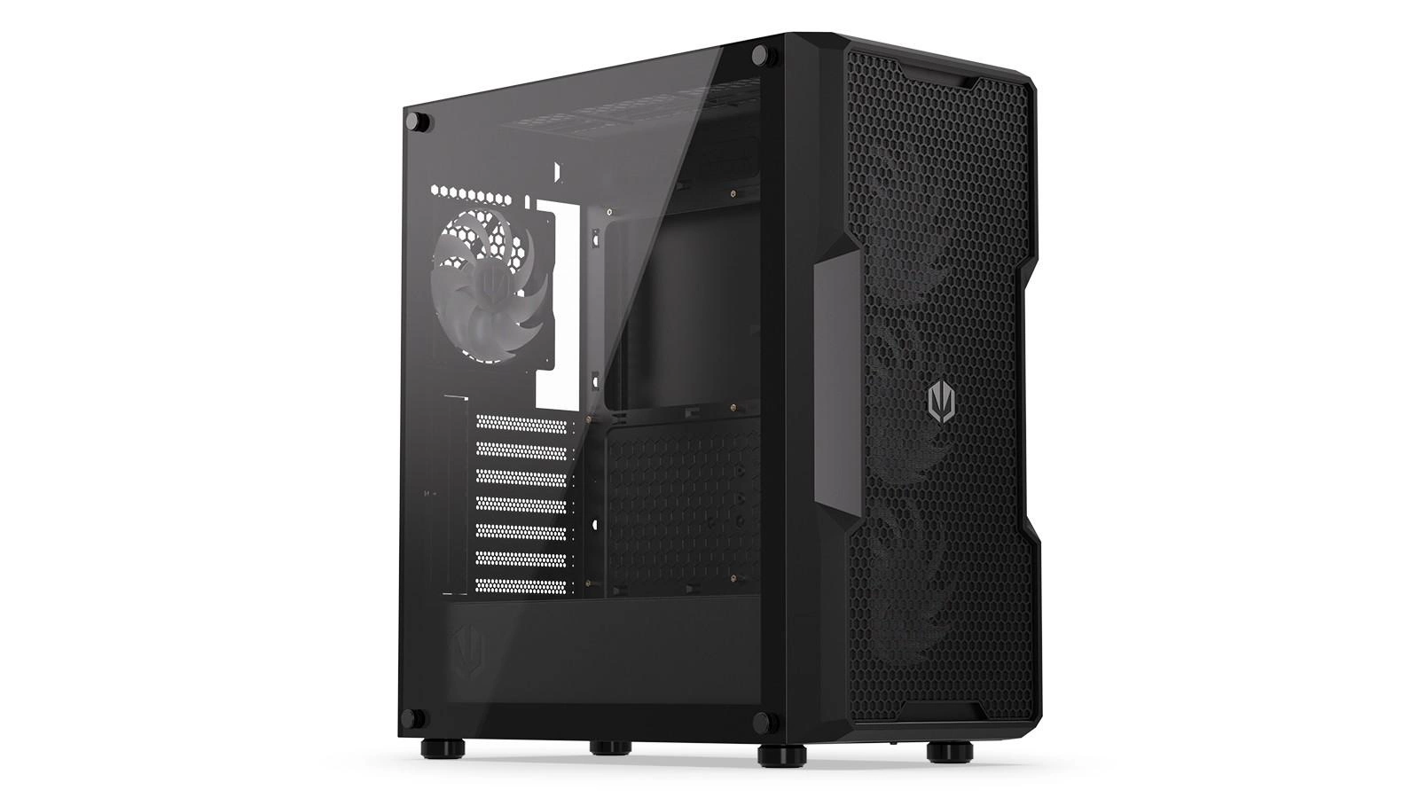 ENDORFY Regnum 400 ARGB to pojemna (472 x 442 x 220 mm) zbroja obudowa z podświetleniem ARGB, o której marzą Twoje komponenty. Pomieści wszystko, czego potrzebujesz do wygrywania wystarczy zajrzeć do środka przez bok z hartowanego szkła, żeby się o tym przekonać.