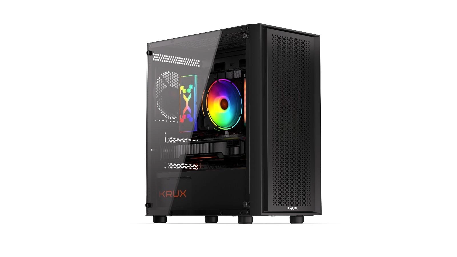 Krux Scor nie dość, że rozmiarowo idealnie wkomponuje się praktycznie w każde stanowisko, to jeszcze jego wewnętrzna przestrzeń została przemyślana tak, by na spokojnie pomieścić wszystkie najpotrzebniejsze komponenty. Znajdzie się tu miejsce na cztery dyski oraz płytę główną w standardzie microATX albo Mini-ITX. Zmieści się tam dosłownie wszystko, czego potrzebujesz, by nie komplikować sobie zbytnio życia.