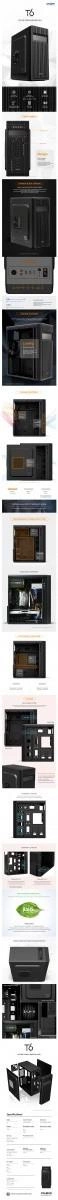 Konstrukcja i wnętrze obudowy T6 zapewnia doskonałą przestrzeń montażową dla każdej części ułatwiając w ten sposób samodzielną budowę komputera PC.