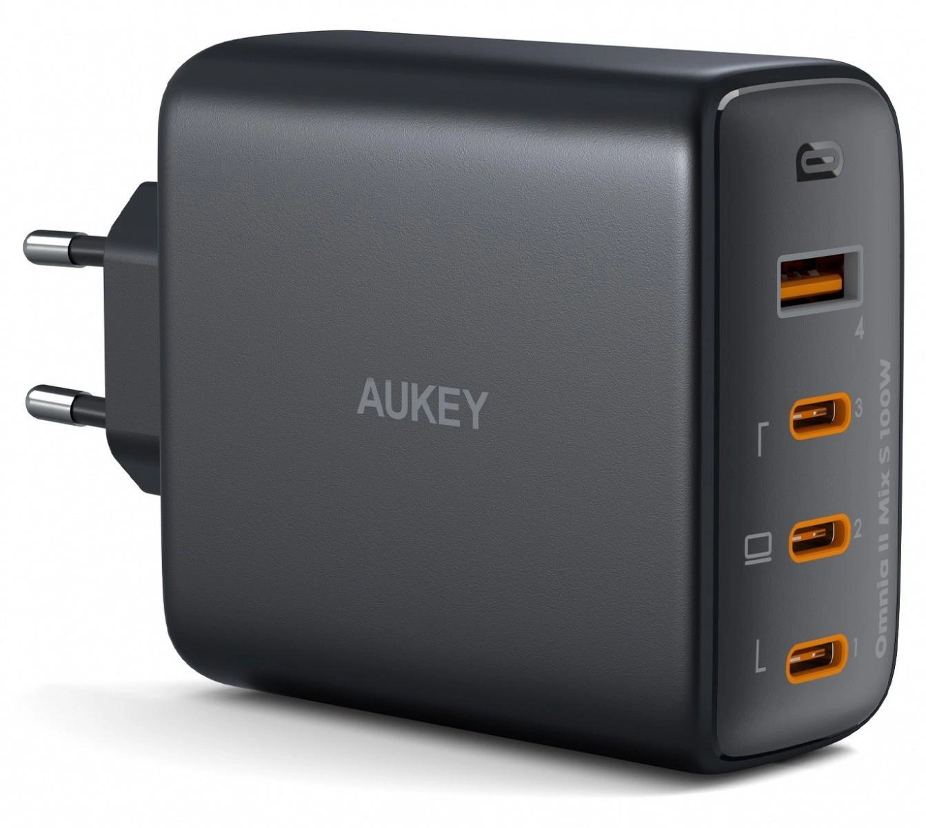 AUKEY PA-B7S Black GaN Omnia II Ultraszybka ładowarka sieciowa 100W PPS 4xUSB (3xUSB-C i 1xUSB-A)