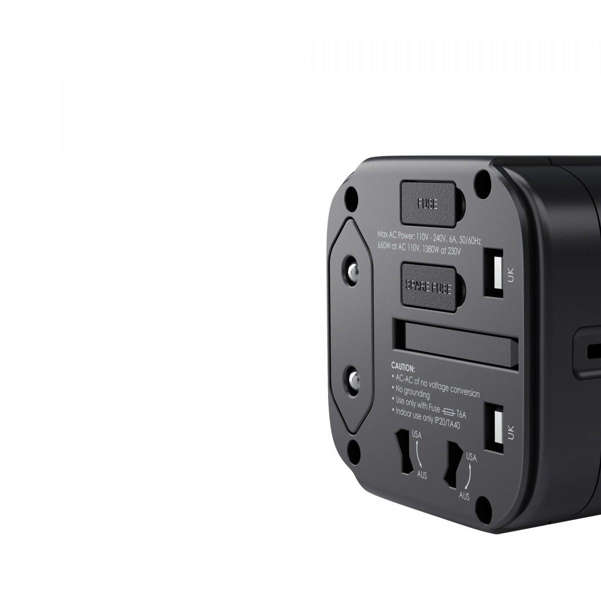 PA-TA01 Black uniwersalny podróżny adapter sieciowy 2xUSB+1xUSB C | 7.8A | pasuje w 150 krajach