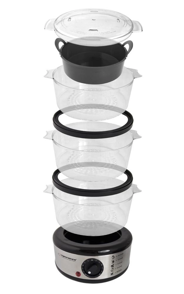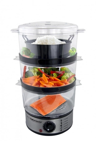 Parowar Esperanza STEAM VOLCANO to niezastąpione urządzenie w każdej kuchni. Pozwala szybko przygotować nawet kilka dań w tym samym czasie, zachowując przy tym ich naturalny zapach i smak.