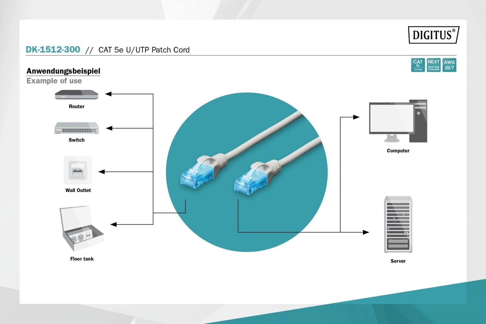 Patch-cord RJ45 (8P8C)/RJ45 (8P8C), kabel U/UTP kat. 5e, dł. 30,0m AWG 26/7 PVC , szary