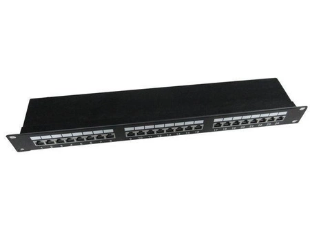 Patch Panel 24 Porty 1U 19'' Kat.5e ekran z funkcją organizacji  kabli czarny