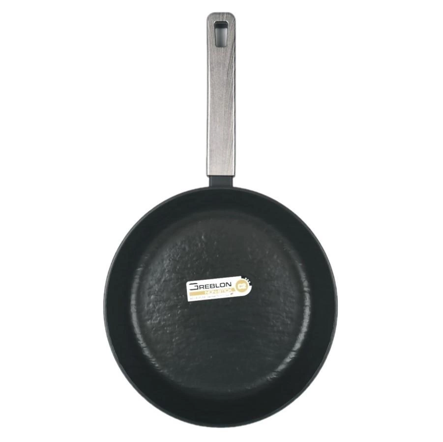 Patelnia została wykonana z trwałego odlewu aluminium, co gwarantuje równomierne przewodzenie ciepła oraz długą żywotność produktu. Wyposażona jest w antypoślizgowy uchwyt imitujący drewno, co nie tylko zwiększa komfort użytkowania, ale także nadaje elegancki wygląd całemu produktowi.
