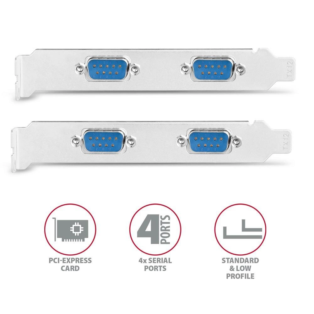 PCEA-S4N Kontroler PCIe 4x port szeregowy RS232 250 kbps, w zestawie SP & LP