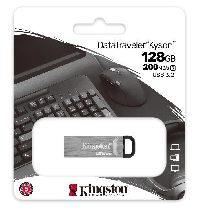 Pojemność do 256 GB pozwala na swobodne przechowywanie i udostępnianie zdjęć, filmów, muzyki i innych treści. Metalowa konstrukcja bez zatyczki pozwala uniknąć jej zgubienia, a funkcjonalny zaczep ułatwia zabranie jej ze sobą. DataTraveler Kyson to stylowa, niezawodna pamięć flash USB-A, która jest objęta ograniczoną 5-letnią gwarancją.